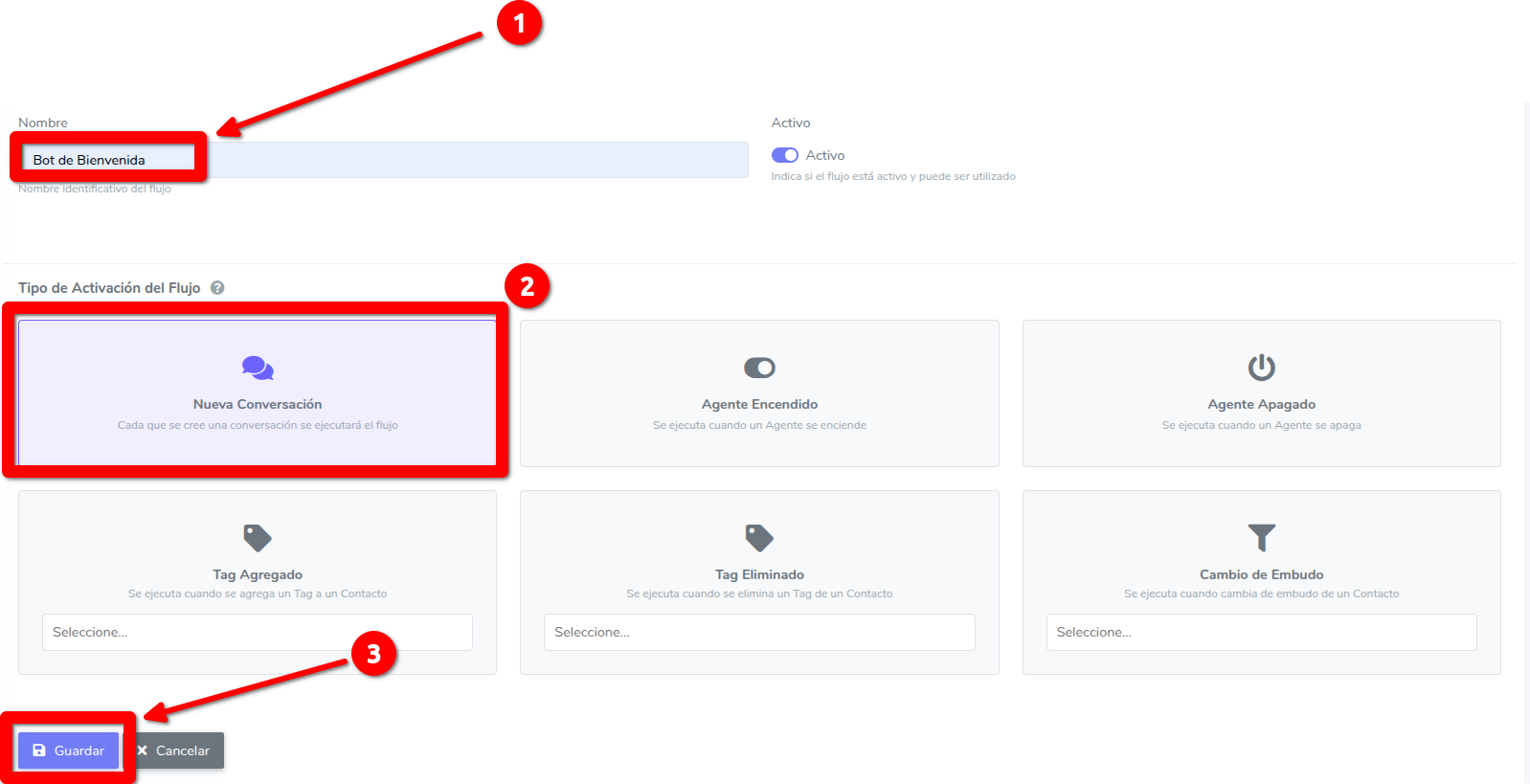 3 Elije un nombre y como activar el flujo